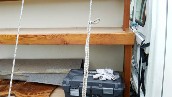 軽トラに載せたものを固定するためにロープで南京縛りをしていると、